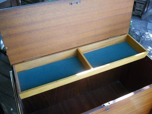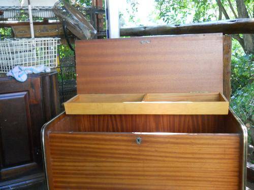 Stunning Modern Mid Cent.1950's Retro Linen Kist very good cond with shelves organize own transport