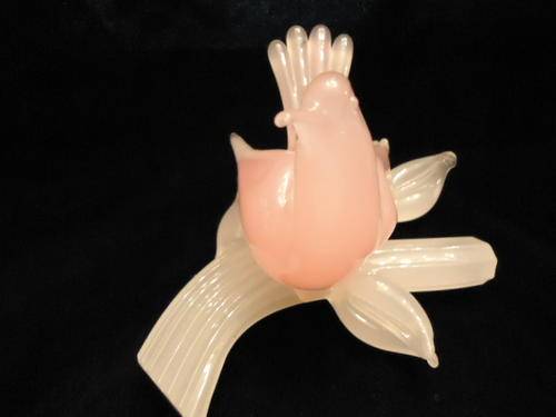 THIS IS A STUNNING MURANO DOVE ON A BRANCH IN PINK AND WHITE.IT SEEMS THAT THE BRANCH WAS GLUED AT SOME STAGE BUT IT IS NOT VISIBLE.NO CHIPS.POSTAGE PACKAGING AND INSURANCE R65.00 DUE TO WEIGHT AND DELICATE NATURE.PAYMENT STRICTLY EXPECTED WITHIN 48 HOURS OF AUCTION END.PLEASE NOTE I POST ON EITHER THE FRIDAY OR SATURDAY FOLLOWING AUCTION BUT ONLY IF CLEARED PAYMENT HAS BEEN RECEIVED.