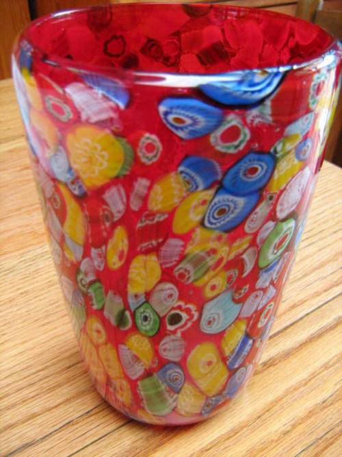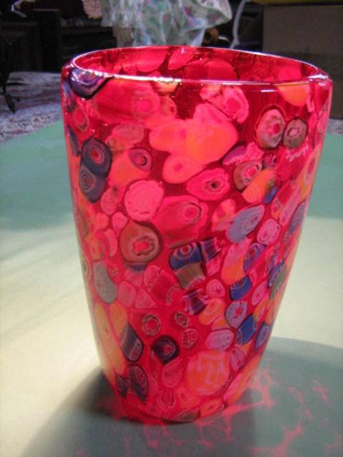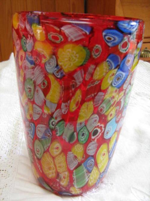 STUNNING THIS MILLEFIORI VASE HAS NO CHIPS OR CRACKS IS 180MM TAKK AND THE TOP OF THE VASE IS 150MM DIAM. THE BOTTON DIAM IS 75MM. HEAVY THICK MURANO VASE.
