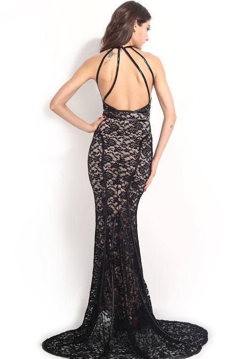 STUNNING NUDE ILLUSION OPEN BACK EVENING DRESS