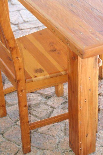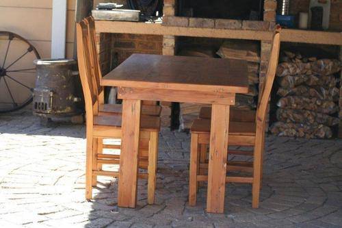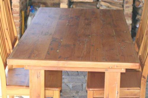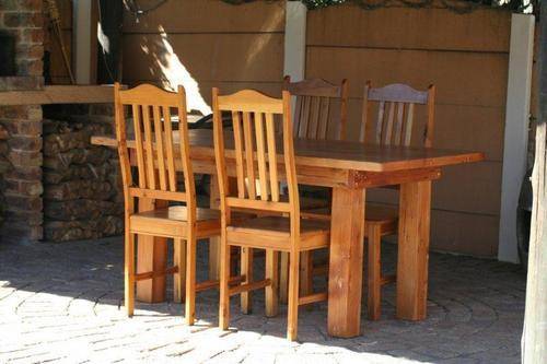 THIS OREGON TABLE AND 4 CYPRUS CHAIRS IS VERY NICE! THIS SET IS PERFECT AS A SMALL DINING ROOM SUITE; A PATIO SET; RESTAURANT / DELI TABLE OR WHEREVER IT WILL WORK FOR YOU!!! AND IT'S SELLING FOR A BARGAIN... THE TABLE IS APPROXIMATELY 1630mm x 800mm. THE TABLE IS 100% OREGON WHILE THE CHAIRS ARE CYPRUS WOOD. THE CHAIRS ARE NICE AND STURD!!!