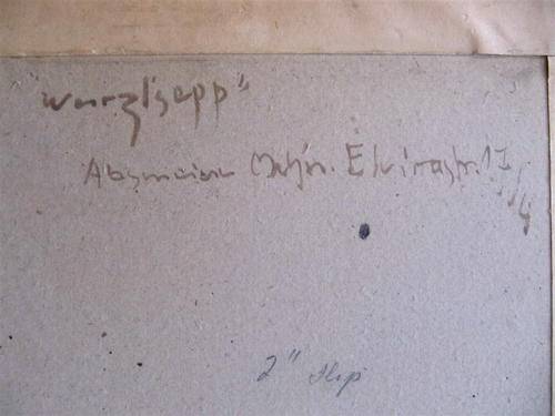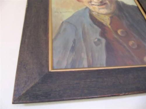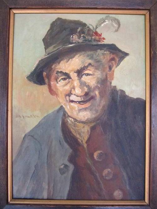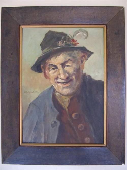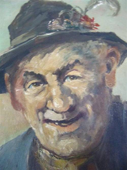 The bulk of his paintings, such as this stunning piece on auction, was painted late 1940s to early 1950s. In this example, we have the portrait painted of countryman / farmer as depicted. On the back of the painting the artist refers to him in German (see photos!) and writes his own details and street address where he stayed in Munich at the time.