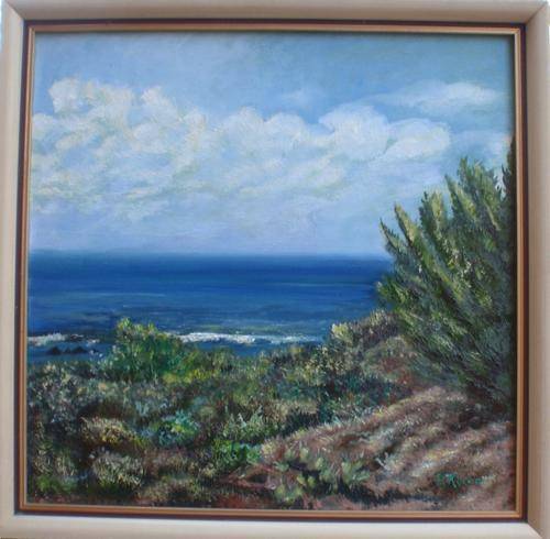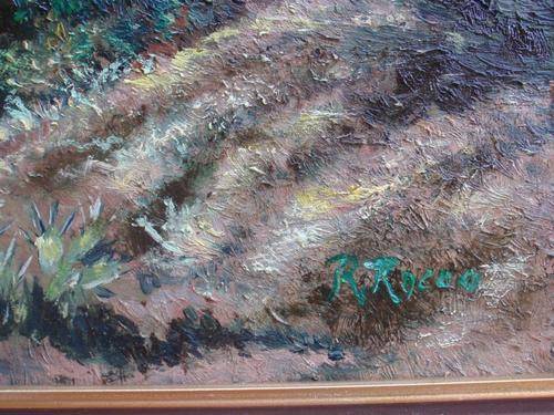 STUNNING ORIGINAL PAINTING - SIGNED R.ROCCO 'AZURE' FRAMED IN CREAM FRAME WITH NARROW GILT FRAME. SIZE: 37.5CM X 36.5CM (INCLUDES FRAME)