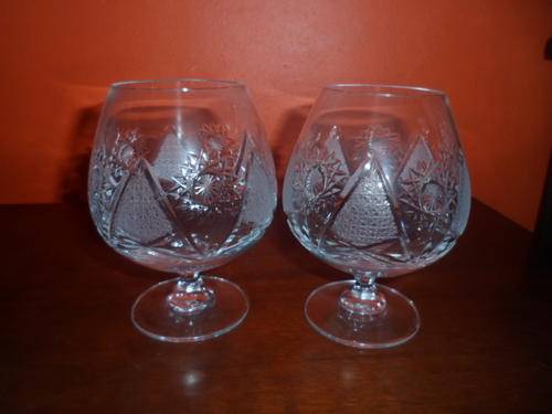 STUNNING PAIR OF CRYSTAL BRANDY SNIFTERS