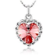 Stunning PINK HEART NECKLACE made with SWAROVSKI ELEMENTS, WHITE GOLD plated 45cm
