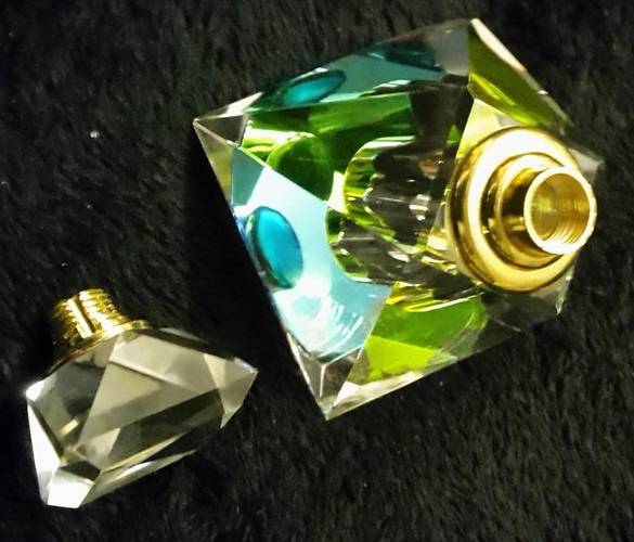 UP FOR BID IS THIS STUNNING HEAVY LEAD CRYSTAL PERFUME BOTTLE. SIZE 80MM X 56MM X 56MM