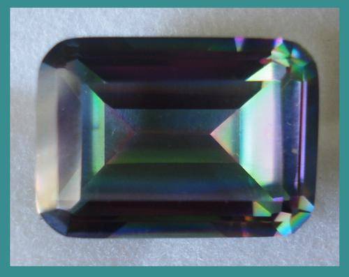 Mystic topaz is created with clear white topaz enhanced usually