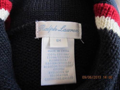 Stunning outfit from Ralph Lauren.Items are used but in good condition.Beige colour Chinos and Navy blue cardigan.Colour of Chinos is a bit darker than it looks in picture.Both items say size 6 months but will fit approx. a 3 month old as Ralph Lauren always comes up smaller.If you would like measurements please ask.