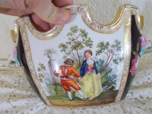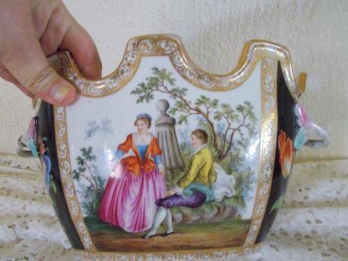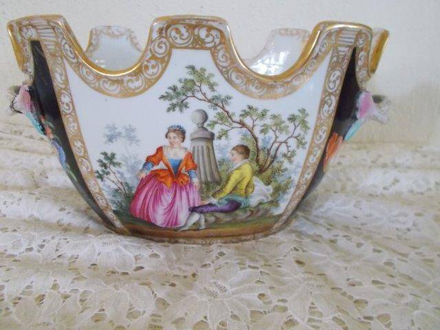 stunning romantic scene vintage pot plant holder item there is a very slight hair line crack noted on the side of this otherwise item in good used condition
