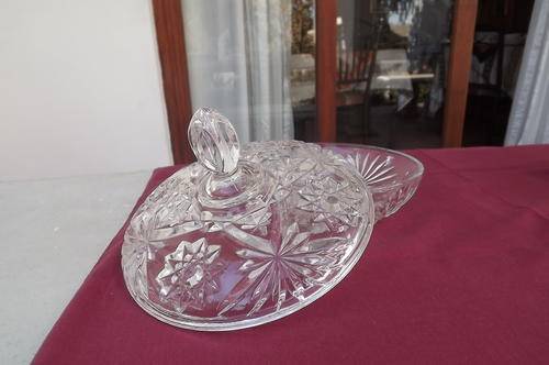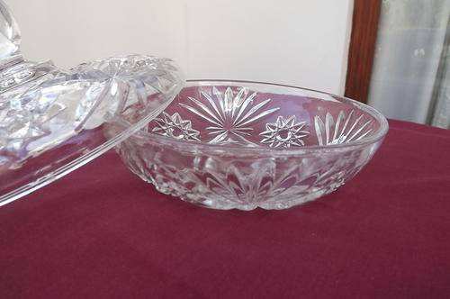 Stunning round vintage glass dish with lid.Diameter 19.5 cm.Good condition