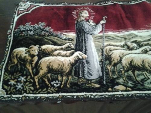 stunning rug tapestry of Jesus and his sheep ideal to cover you're Kist item in good used condition