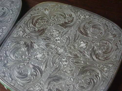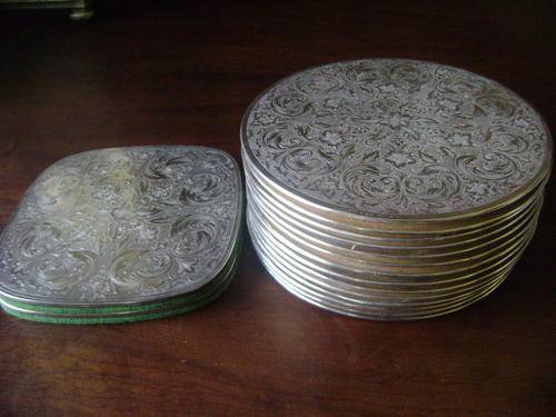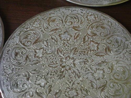 STUNNING SET OF 16 VINTAGE SILVER PLATED PLACEMATS WITH DETAILED ENGRAVING - MADE IN SWEDEN (NO 2)