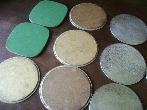 (DIFFERENT COLOUR REFLECTIONS ON PLACEMATS ARE DUE TO THE REFLECTION OF THE SURROUNDINGS - BRICK WALL IN BACK GROUND - AND OTHER SURROUNDINGS, REFLECTING ON SURFACES OF PLACEMATS)