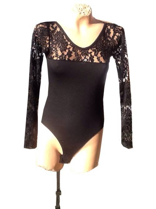 Bodysuit lace inset in front and long lace sleeves(plain back). Gorgeous stretch lace fabric