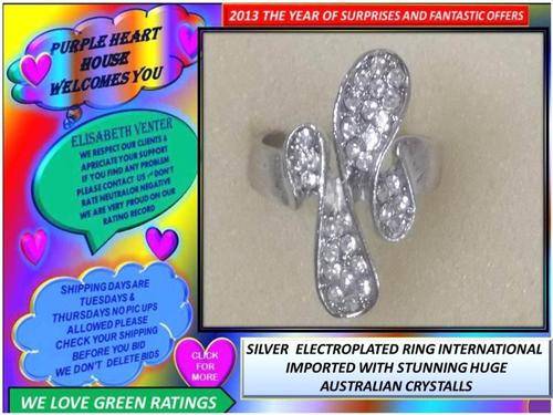 STUNNING SILVER DESIGNERS ELECTROPLATED RING WITH BEAUTIFUL STONES ADDED SIZE17,18