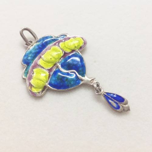This Sterling Silver & Enamel Art Nouveau pendant is a medley of blue and lemon!