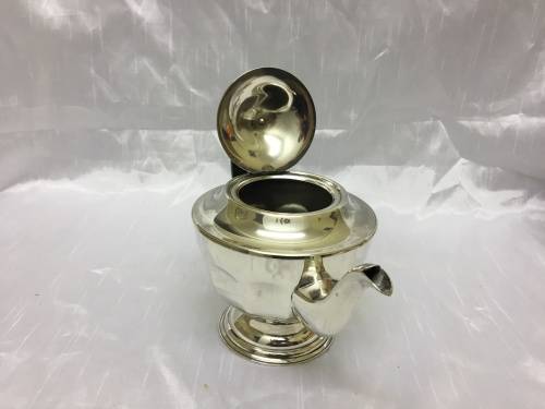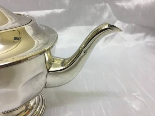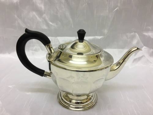 A stunning silver-plated teapot with bakerlite handles - add a touch of class to your tea party! Please Note: there is a tiny dent on the spout - see the pics