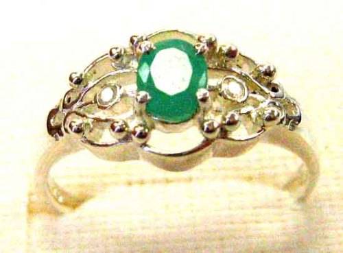 Stunning Silver Silver and Genuine Emerald and Diamond Ring.