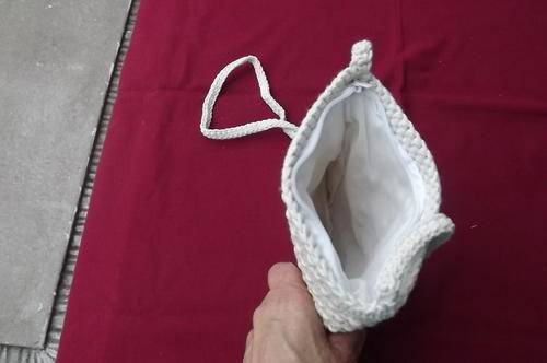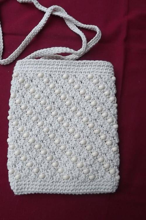 Stunning small crochet sling bag with zip.With beads.Cream colour.Size 18x16.5cm.New item-never used