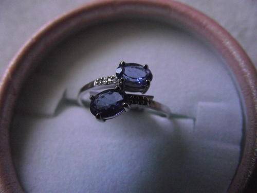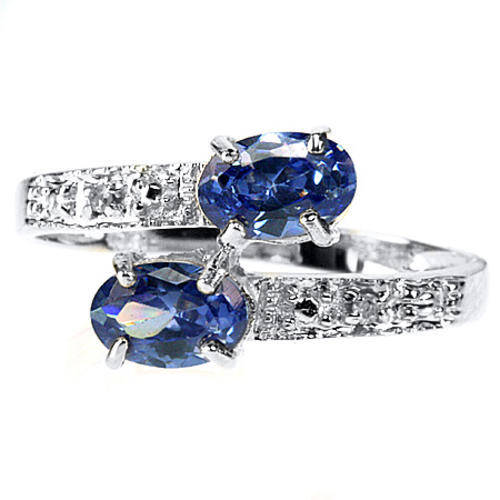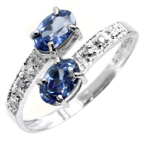 STUNNING SOLID 9KT WHITE GOLD GENUINE 2 TANZANITE (1.0 CT) 4 X DIAMOND RING
