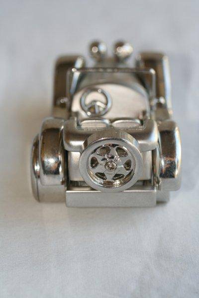 THIS IS A STUNNING OLD CAR AND THE CLOCK STILL WORKS PERFECTLY!!! THE WHEELS TURN AND THE WINDSHIELD FOLDS DOWN. THE CAR IS SOLID AND VERY HEAVY FOR ITS SIZE; VERY WELL MADE! THE CAR IS APPROXIMATELY 95mm LONG AND 50mm WIDE. PLEASE VIEW THE PICS VERY CAREFULLY FOR MORE DETAIL AND CONDITION AS THIS FORMS PART OF THE DESCRIPTION. STANDARD POSTAGE AND PACKAGING OR PLEASE ARRANGE TO COLLECT IN BOKSBURG.