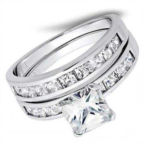 STUNNING! SOLID STERLING SILVER PRONG SETTING DESIGN WEDDING RING SET