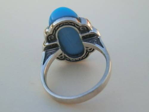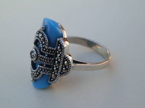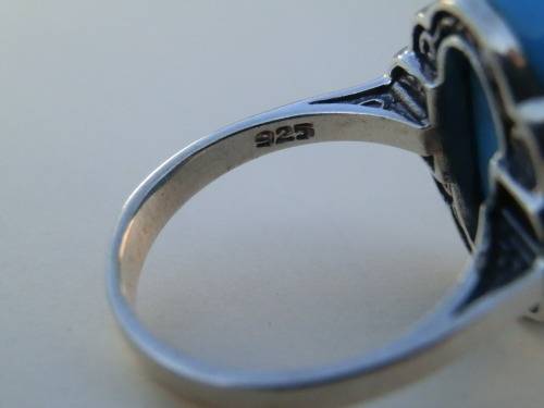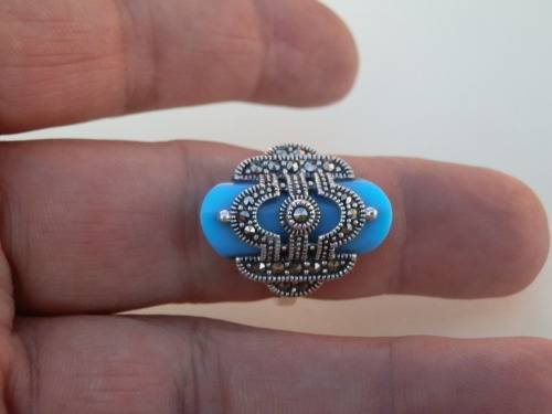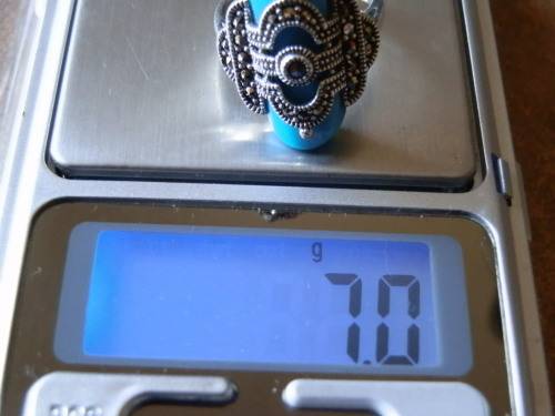 Stunning solid sterling silver turquoise and marcasite ring - weight 7 g. Thirty (30) days to pay.