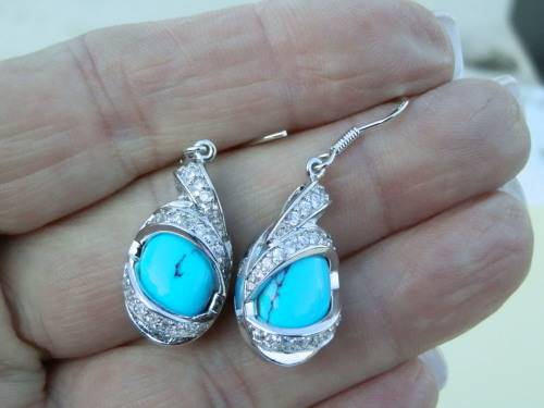 Stunning solid sterling silver turquoise earrings - weight 8.2 g. Thirty (30) days to pay