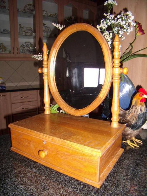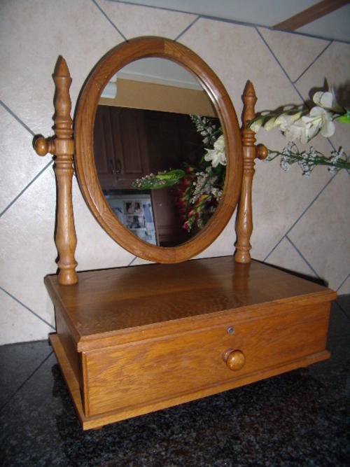 Stunning Solid Wood Vanity Unit with a Lovely Oval Framed Detachable Mirror & Drawer.