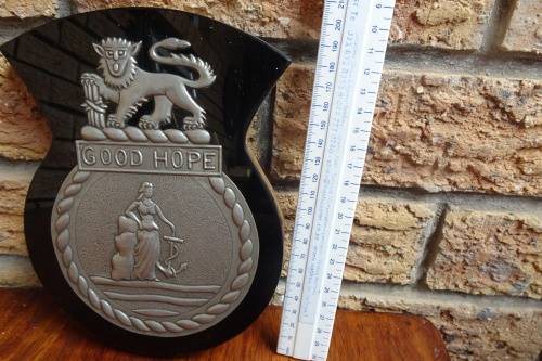 Stunning South Africain Navy Ships Plaque - Good Hope - Pewter and Glass mounted on Wood