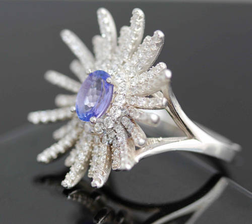 LARGE SHOWY HANDCRAFTED TANZANITE DRESS RING