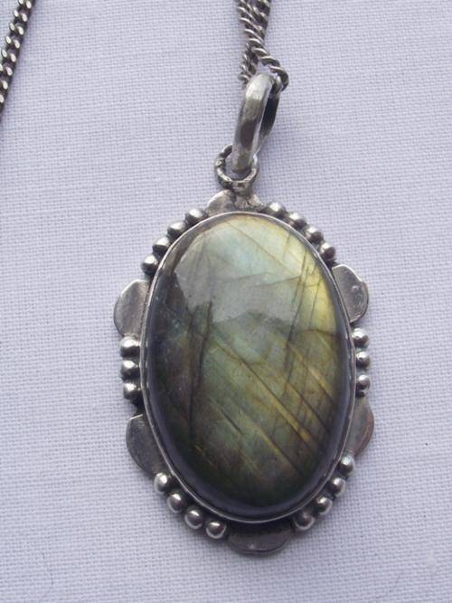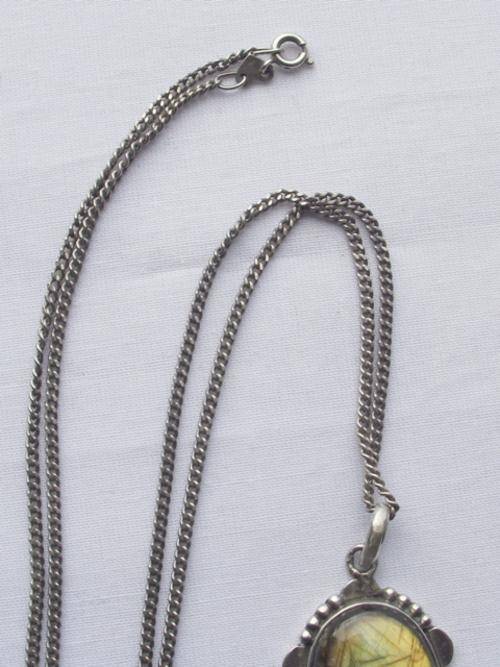 STUNNING STERLING SILVER CHAIN WITH A LARGE LABRODITE PENDANT SET IN STERLING SILVER