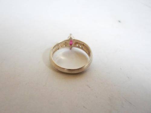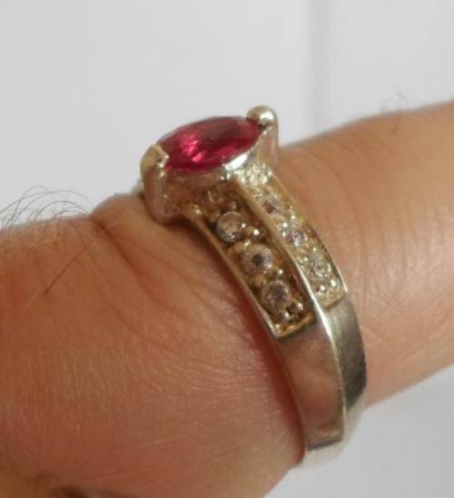 STUNNING!! STERLING SILVER, RUBY & CZ RING SIZE O 3.2gr