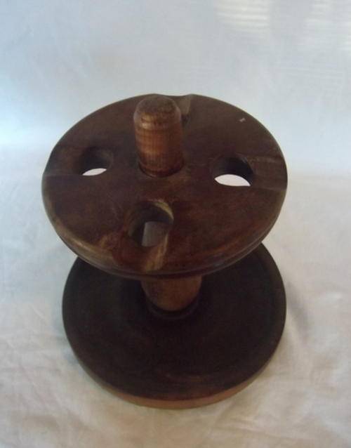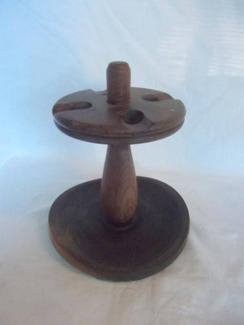 This is a hand turned Stinkwood pipe stand and made in South Africa. In a fairly good condition, but note that the base is not flat but a bit upturned. I looks like it was made like that, but it could be that it got wet at some stage - but I don't know. It is not a problem and it is a beautiful item.