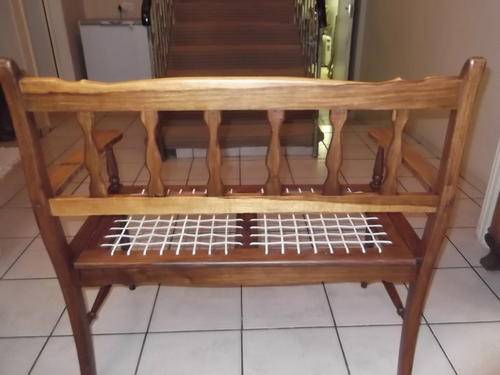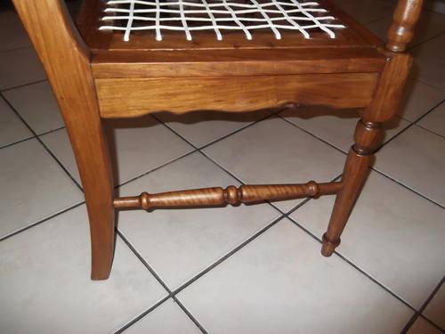 This is a lovely piece, the leather riempies have been replaced with new leather riempies, and overall this piece is in a great condition. There is stain on the wood of the armrest on the left side but it does not draw attention away from the beauty of this piece.