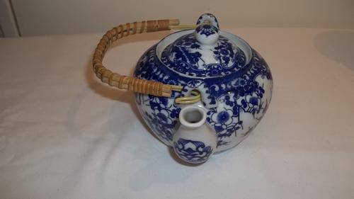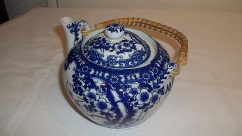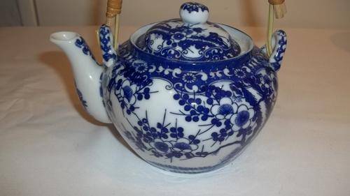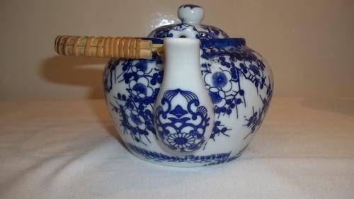 THIS BEAUTIFUL JAPANESE HAND PAINTED PORCELAIN TEAPOT MEASURES 14cm TALL AND IS 9.5cm WIDE. JAPANESE PORCELAIN IS OFTEN REFERRED TO AS IMPERIAL CHINA AND RIGHTLY SO. THE BEAUTY OF JAPANESE PORCELAIN IS VERY EVIDENT IN THE EXQUISITE HAND PAINTED ARTWORK AND SOLIDNESS OF THE PIECES. THEY ARE WONDERFUL ITEMS AND LOOK GREAT IN ANY SETTING. THIS AWESOME TEAPOT IS IN MINT CONDITION WITH NO CRACKS OR CHIPS. THE TEAPOT IS A PERSONAL FAVORITE OF MINE WITH ITS WONDERFUL ETHNIC HANDLE.