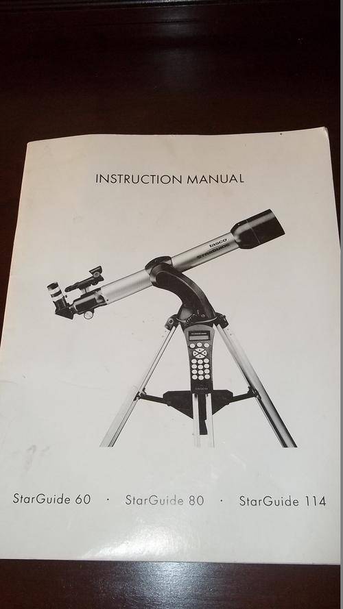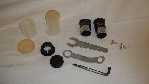 THIS AWESOME TASCO STARGUIDE 60 TELESCOPE HAS TWO EYEPIECES, A 10mm LONG EYE RELIEF EYEPIECE AND A 20mm WIDE ANGLE LONG EYE RELIEF EYEPIECE GIVING TWO VERY DIFFERENT MAGNIFICATIONS. THE TOOLS AND THE MANUAL ARE ALSO INCLUDED. AS FAR AS I CAN MAKE OUT, ALL THE RELEVANT PIECES ARE THERE. THE TRIPOD IS ADJUSTABLE AND CAN BE FOLDED AWAY FOR EASY STORAGE. THE TELESCOPE IS WELL LOOKED AFTER AND IN GREAT CONDITION.