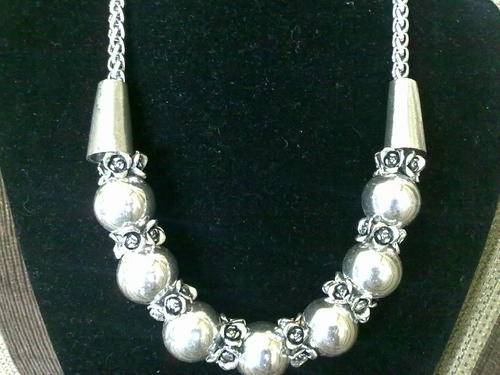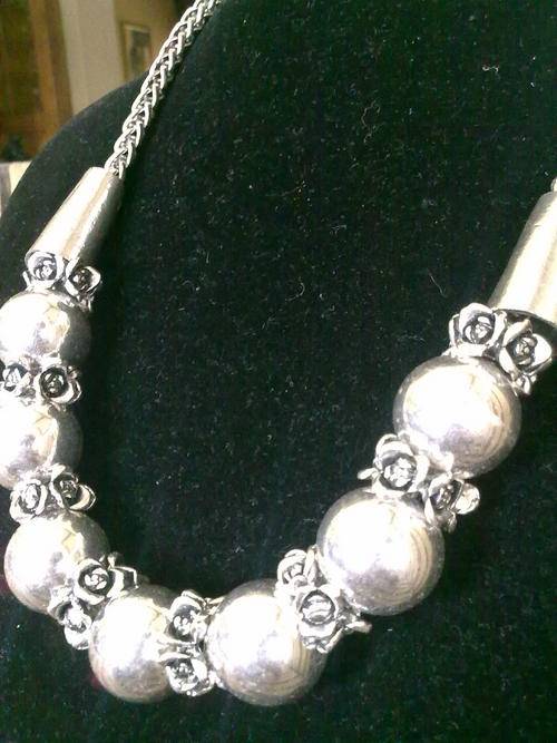 STUNNING!!! TIBETAN SILVER DIAMANTE & LARGE BALL NECKLACE
