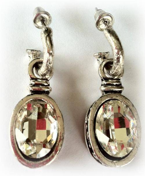STUNNING TIBETAN SILVER DIAMANTE OVAL EARRINGS