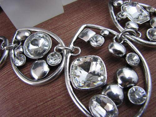 STUNNING TIBETAN SILVER OVALS WITH CRYSTALS NECKLACE