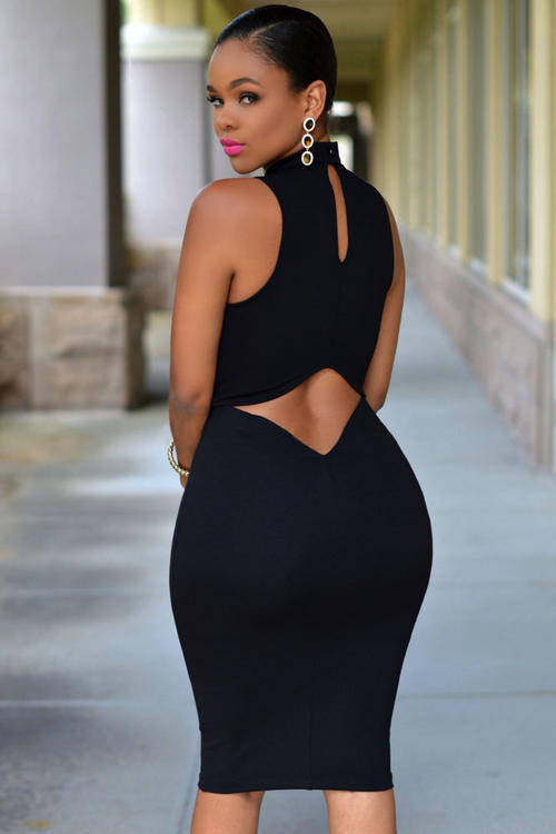 STUNNING TURTLE NECK WITH CUT AWAY BACK DETAIL MIDI DRESS