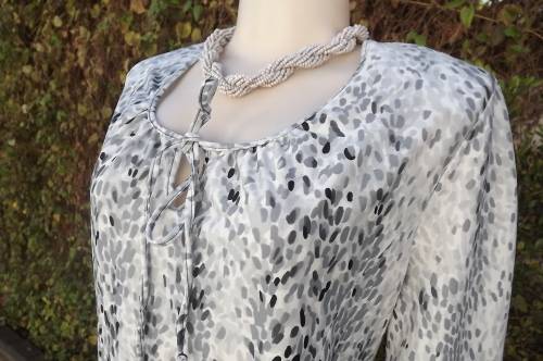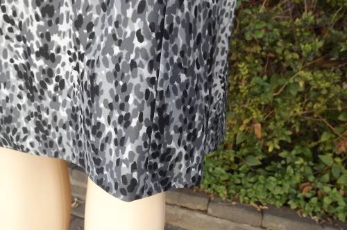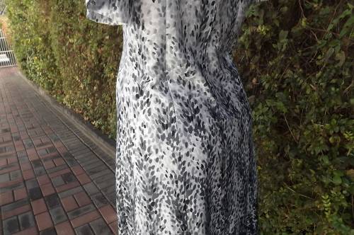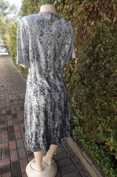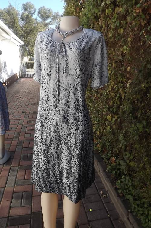 Stunning vintage 100% wash and wear polyester dress by RUCA in size 42/18.As new.In grey and black pattern getting darker towards seam.Calf length.Round neckline with tiestring on front.