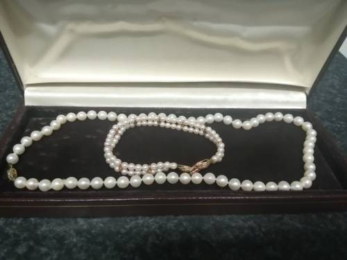 Tis 14K Yellow gold &pearl necklace and bracelet is in GREAT condition.
