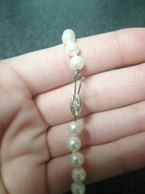 between each of the pearls on the bracelet, there is a Gold link with a diamond inside. please see photos attached