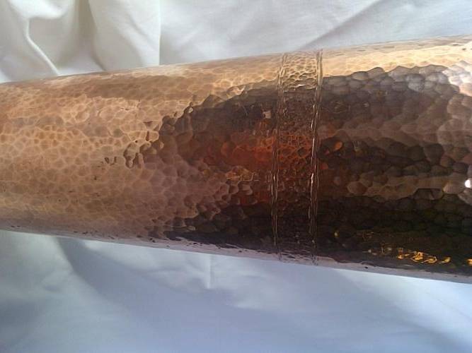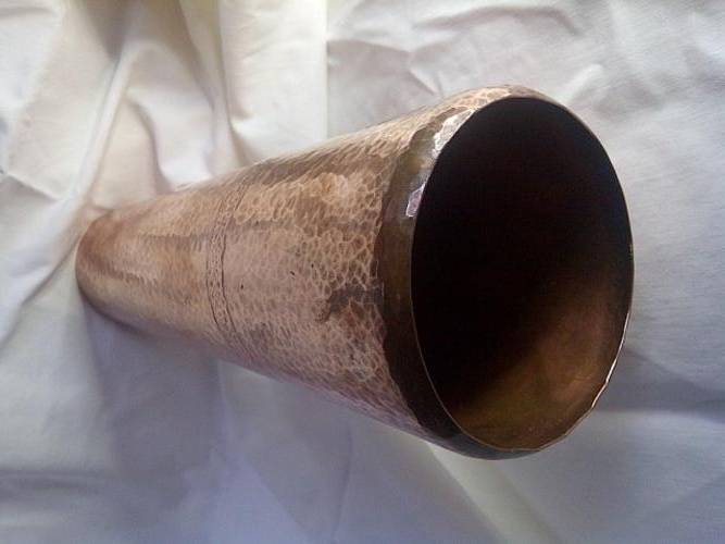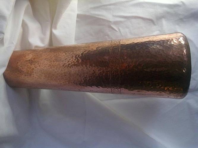 A beautiful vintage beaten copper vase, in excellent condition, measuring 29cm high x 10.3cm top diameter x 6.6cm bottom diameter and weighing 3.908kg's. Stamped HB Hand beaten on the base