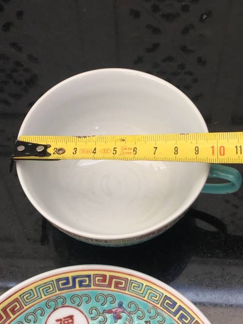 Size; Cup 5.5 cm high x 10 cm wide. Saucer 14 cm