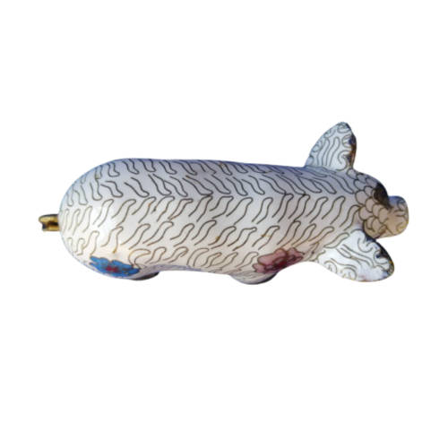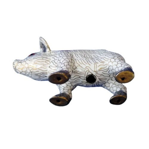Introducing a truly captivating vintage Cloisonné Pig Figure, a delightful piece that exudes charm and elegance. Crafted with meticulous attention to detail, this stunning collectible showcases an attractive design with exquisite brass curled tail and brass feet, adding a touch of sophistication to its overall aesthetic.