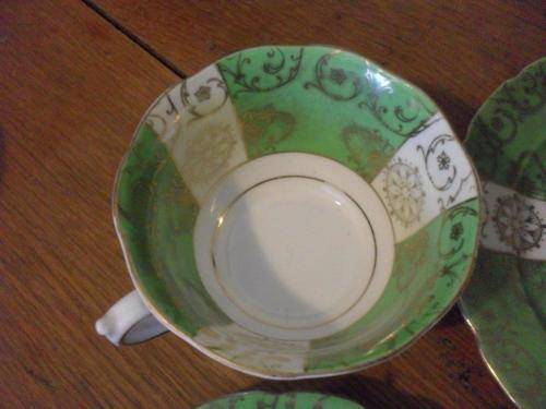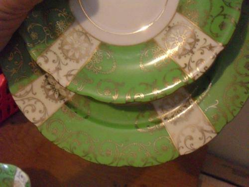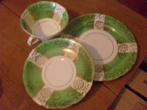 STUNNING VINTAGE GREEN/GOLD TRIO...MADE IN CZECKOSLOVAKIA....