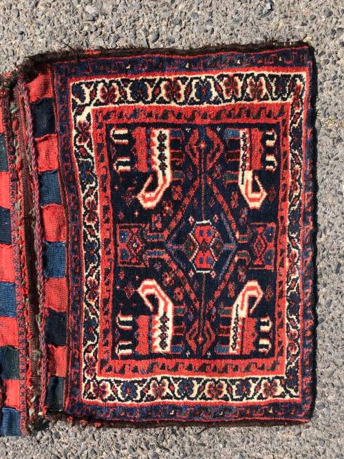 STUNNING VINTAGE HEAVY HAND KNOTTED PURE WOOL PERSIAN SADDLE BLANKET / SADDLE BAG - 990 X 620mm