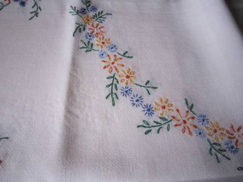 A really clean and beautiful vintage tablecloth is really lovely condition the tablecloth is snow-white which is unusual because vintage linen does tend to slightly discolour with age, the embroidery is throughout the cloth both on the outside and in the middle, the edging is in brilliant condition as well. Approx 102cms long and 110cms wide, postage will be 70.00.